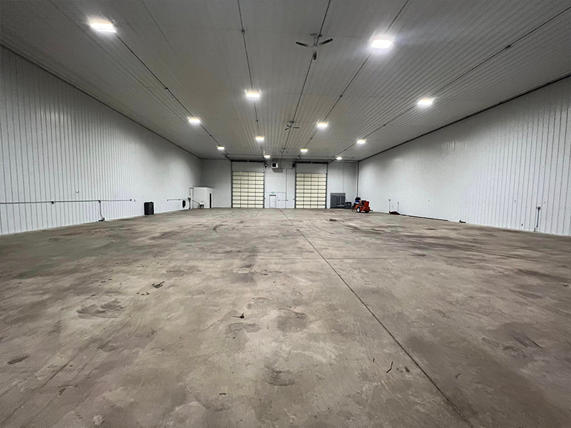 The warehouse sits on the corner of Ridge Road and Wright Circle. Built in 2018, 80×120 (9,600 Sq Ft) Building. Two overhead doors, 16 wide by 18 high. 24 ft ceilings, municipal water & sewer. Three phase-800-amp service installed. Crane footers installed for up to 10-ton crane.